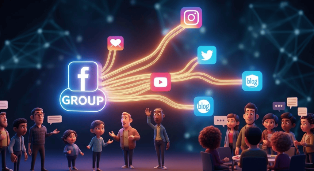 Quando isso acontece, cada novo post do grupo vira um ponto de entrada para páginas, perfis, vídeos e links externos — sem depender de anúncios.